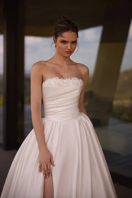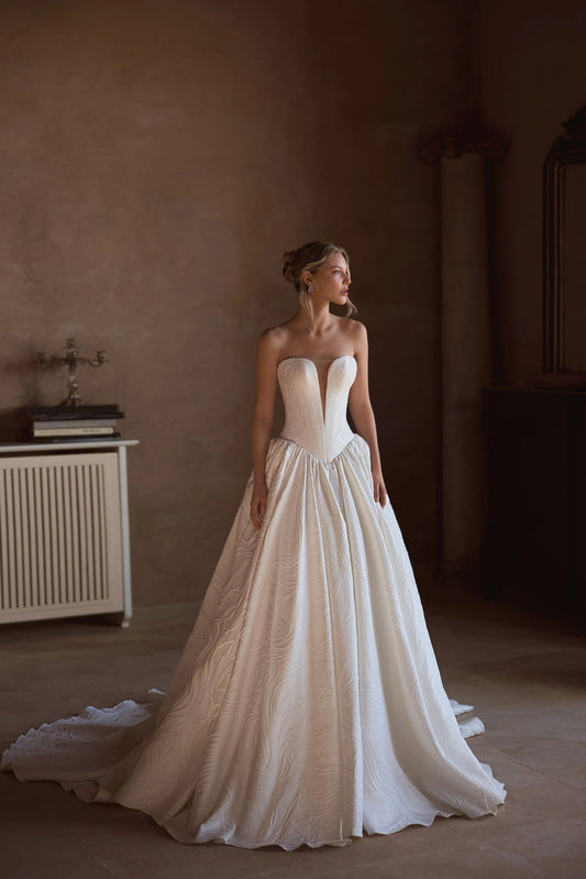 Whether you envision yourself as a Bohemian Bride or prefer the elegance of a Timeless Bride, we have a dress that captures your unique essence. For brides leaning towards the unconventional, our Unconventional & Alternative collection awaits. If you're after a more sultry look, explore the Dramatic & Sexy Bride range. Simplify with the chic designs in our Simple Wedding Dresses, or embrace the romantic in you with styles tailored for the Romantic Bride. Every dress deserves the perfect accessory. Elevate your gown with the perfect Jewelry & Headpieces, and consider enhancing your silhouette with our curated selection of Veils, Belts & Garters. Don't forget the footwear! Step into matrimony with a pair from our exquisite Shoes collection.