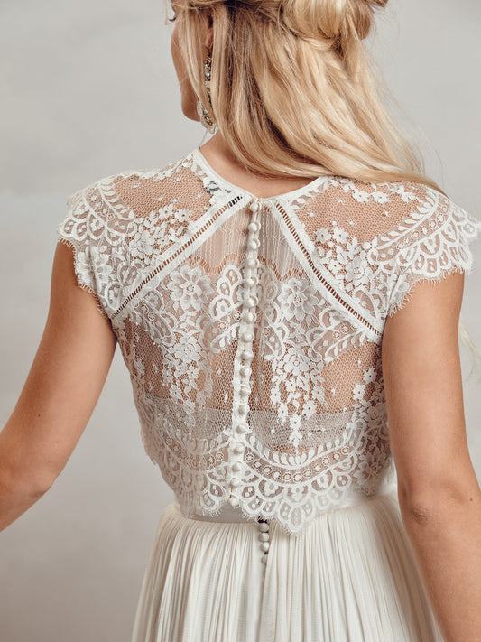 Le tissu est également important. De la soie à la dentelle en passant par le tulle et tout ce dont vous pouvez rêver, chaque tissu offre son propre charme et son caractère unique à la robe. Recherchez également les détails. Des perles complexes ou des broderies florales peuvent se trouver sur des robes plus bohèmes ou romantiques, tandis que des dos ouverts et de longues traînes peuvent être davantage dans le style romantique.