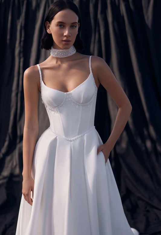 Whether you envision yourself as a Bohemian Bride or prefer the elegance of a Timeless Bride, we have a dress that captures your unique essence. For brides leaning towards the unconventional, our Unconventional & Alternative collection awaits. If you're after a more sultry look, explore the Dramatic & Sexy Bride range. Simplify with the chic designs in our Simple Wedding Dresses, or embrace the romantic in you with styles tailored for the Romantic Bride. Every dress deserves the perfect accessory. Elevate your gown with the perfect Jewelry & Headpieces, and consider enhancing your silhouette with our curated selection of Veils, Belts & Garters. Don't forget the footwear! Step into matrimony with a pair from our exquisite Shoes collection.