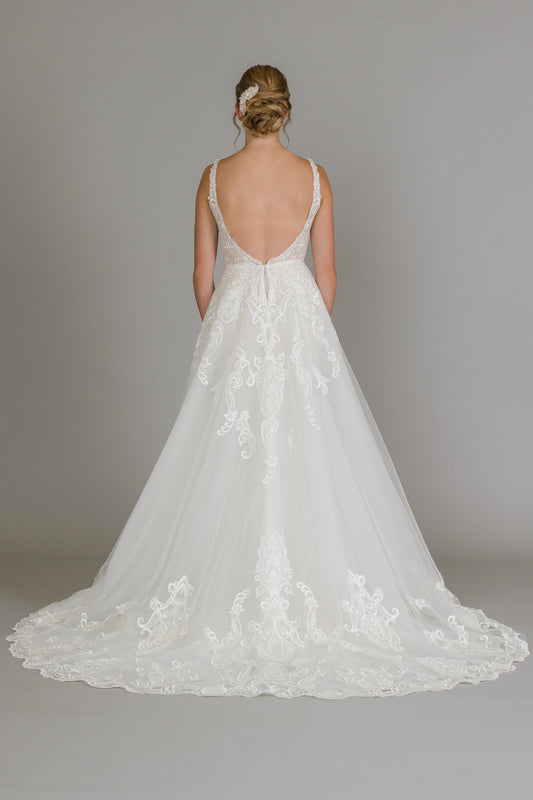 Les décolletés peuvent être en forme de cœur, sans bretelles, à manches courtes, à col montant ou plongeant. Ils peuvent faire passer une robe de l'état romantique à l'état lisse, en passant par l'état dramatique. Si vous êtes indécise, il existe des robes avec des décolletés convertibles qui vous permettent d'avoir des looks différents pour votre cérémonie et votre réception.