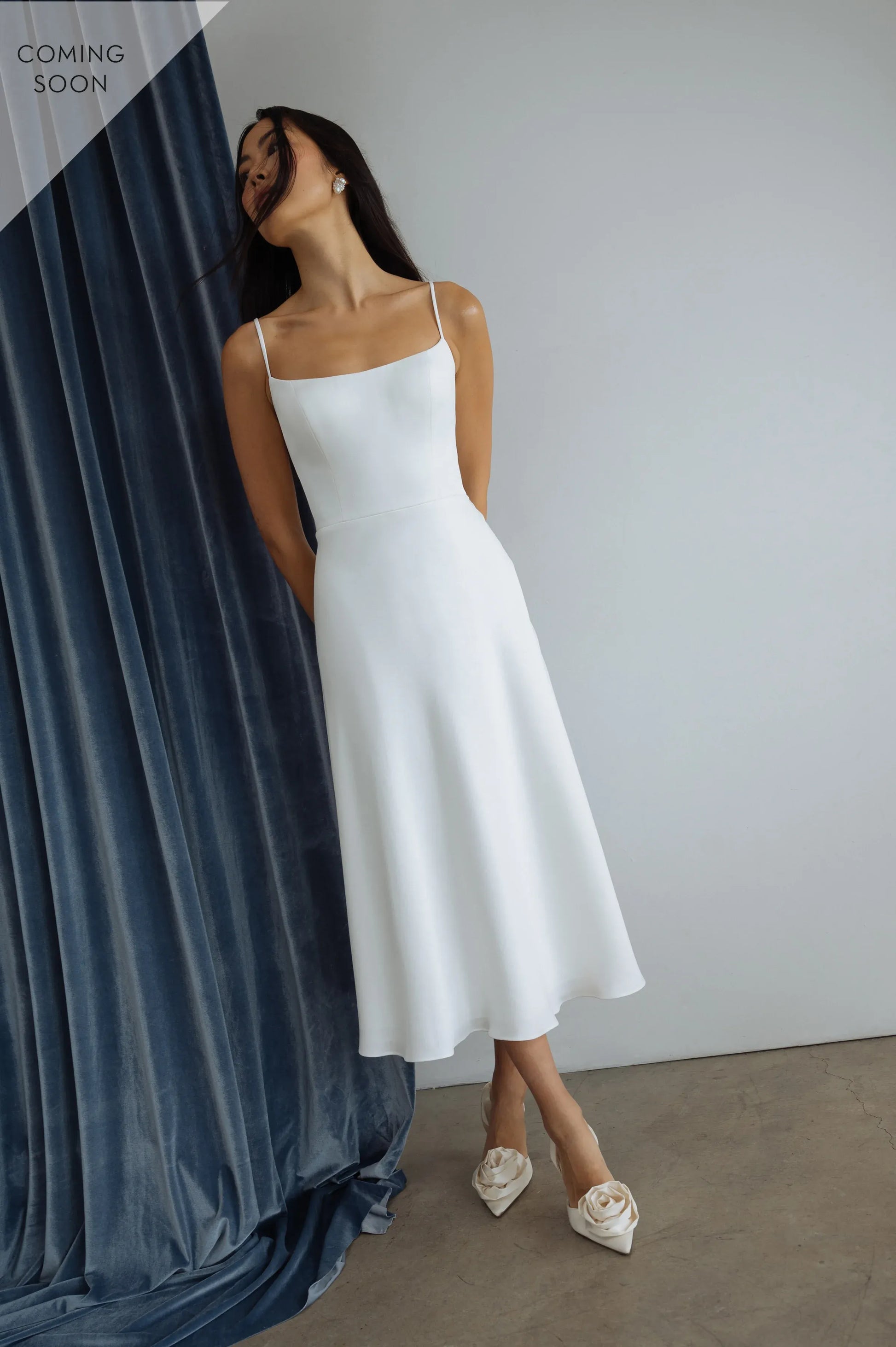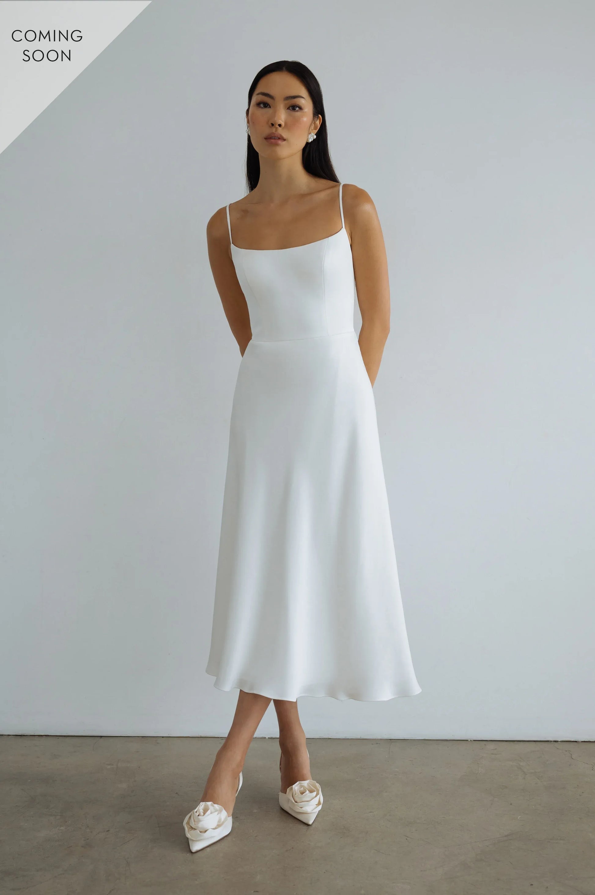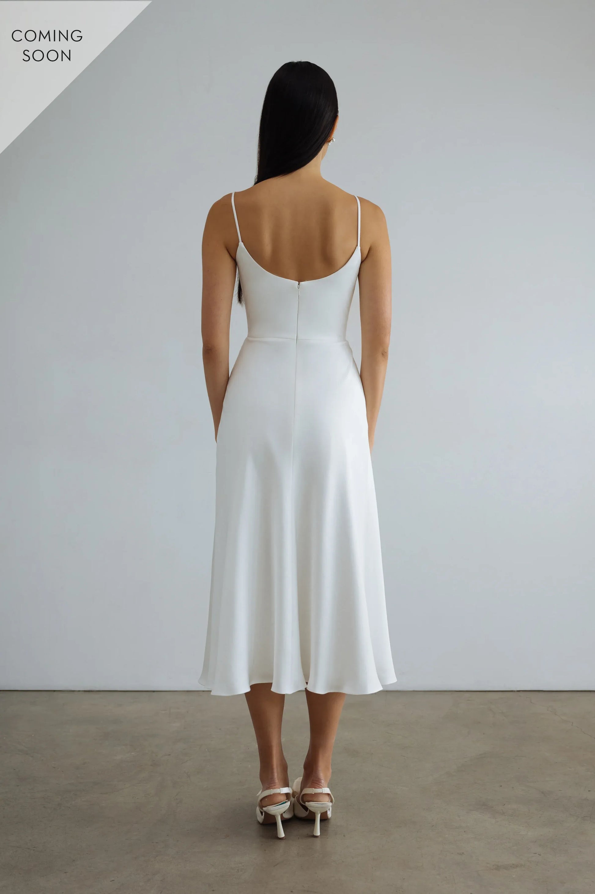 The Callie dress is a take on our forever favorite Callista dress, back with a new and improved fit. A higher back neckline offers a structured, supportive fit through the classically styled bodice.