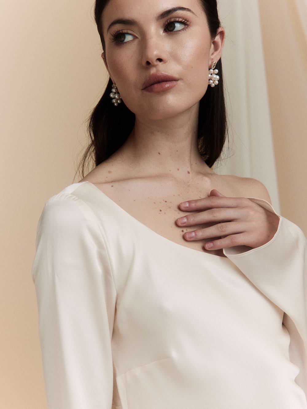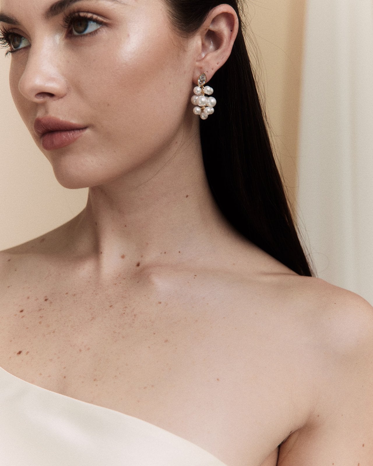 Luella is a gentle lullaby brought to life, a perfect blend of softness and strength. Imagine white blossoms, a whimsical ambiance, and delicate femininity. She is thoughtfully crafted from our favorite elements: pearls, solid metals, and rhinestones. Luella captures the essence of modern bridal elegance with a fresh twist on timeless beauty, designed to be cherished for a lifetime.
