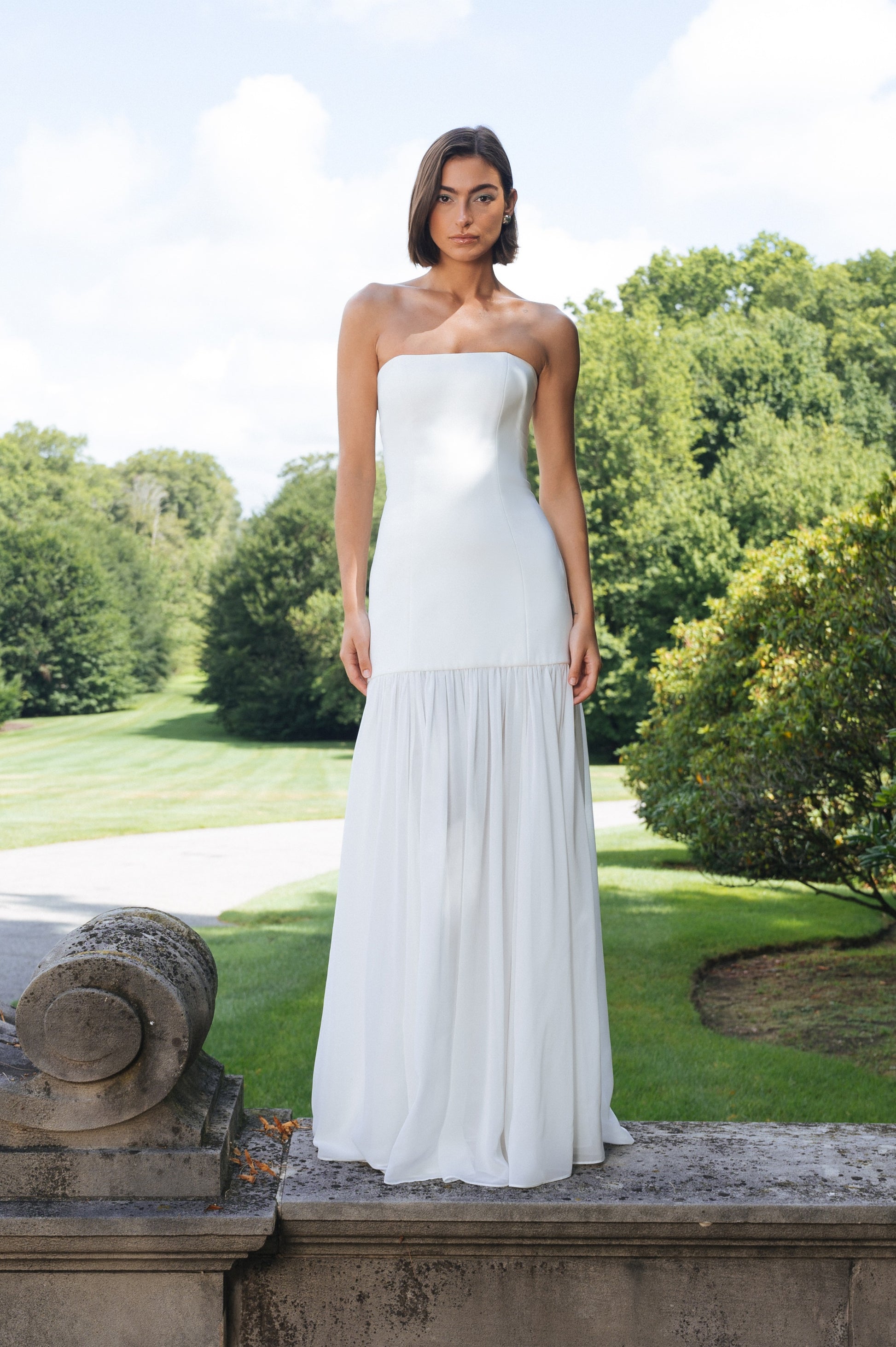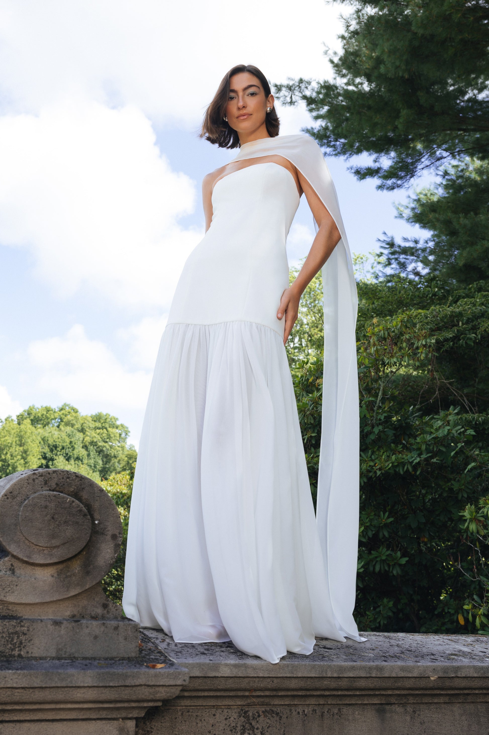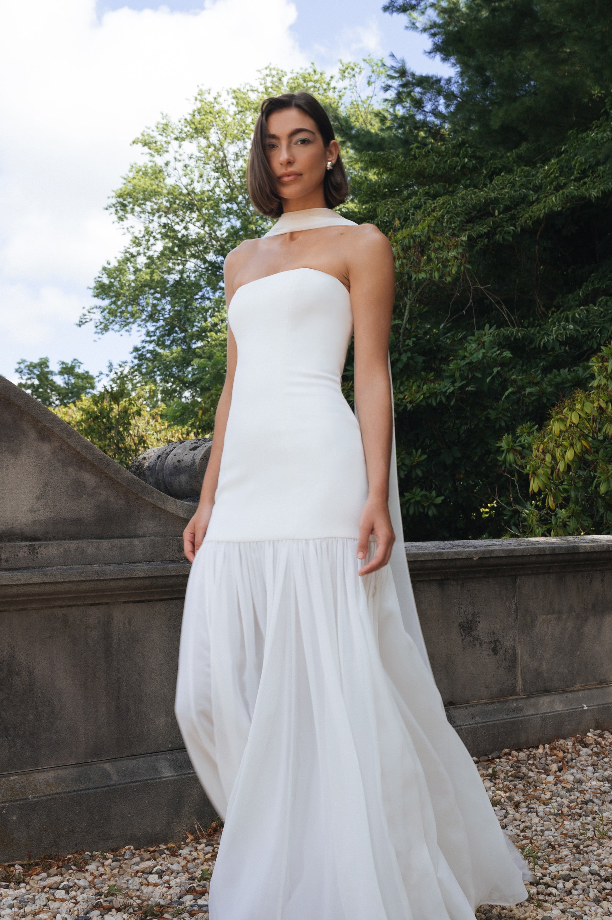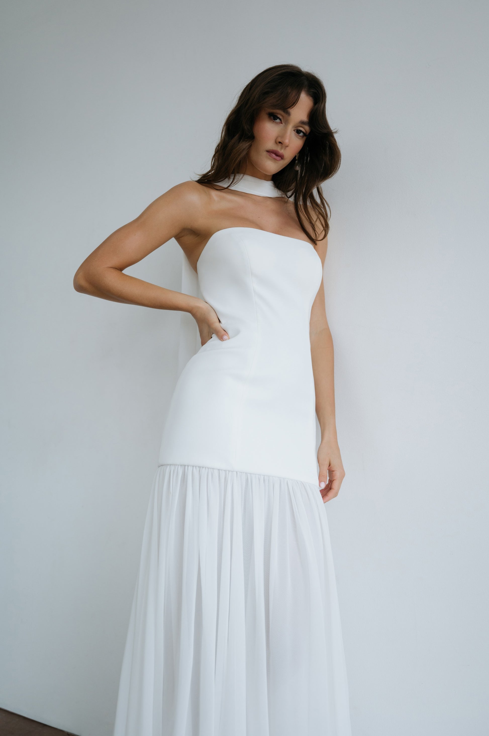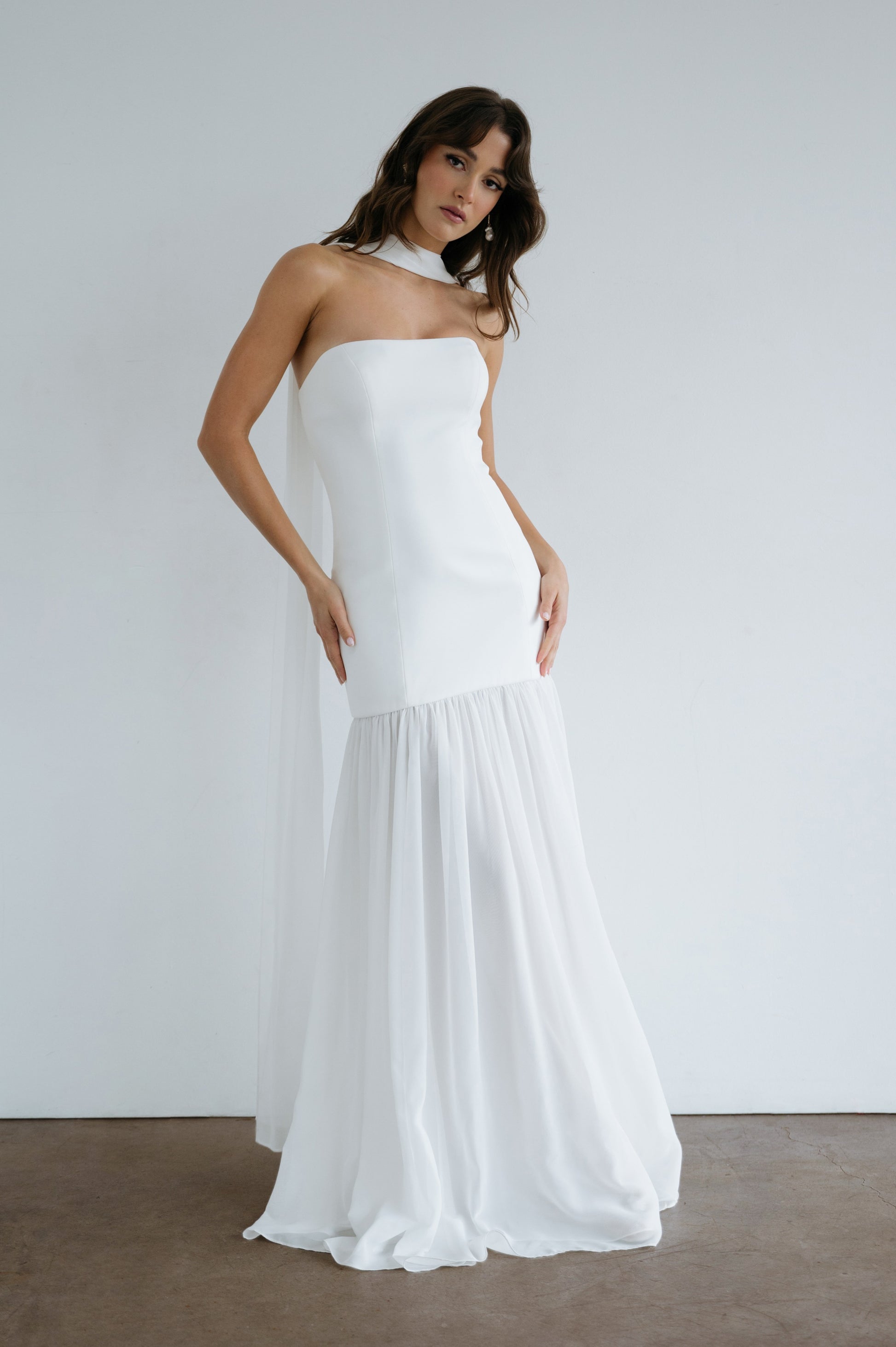 The Matilda dress is a harmonious blend of contrasts. Its sharply tailored mini silhouette is softened by a flowing, romantic chiffon overlay. It embodies elegance without effort, formality with ease, and a timeless charm infused with modern appeal.